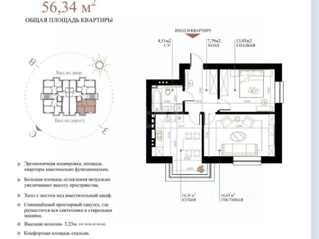 Удачная планировка, просторный холл, большая кухня, 2 санузла!