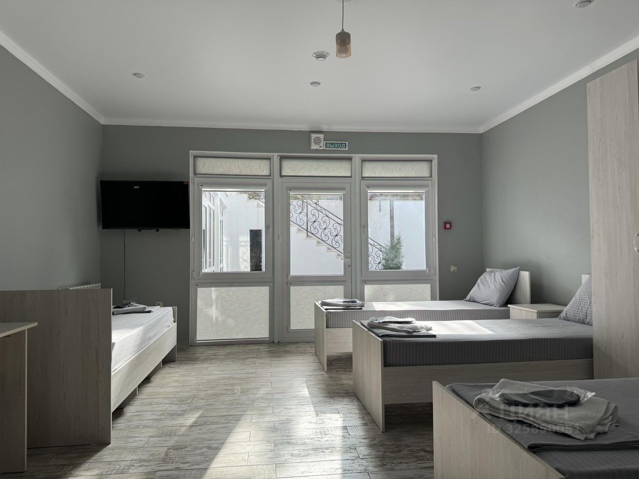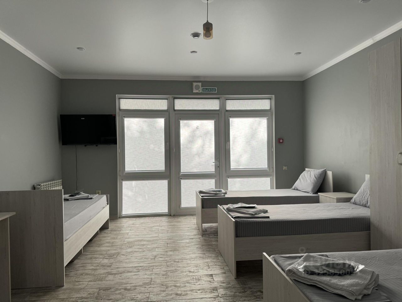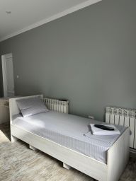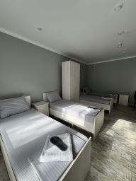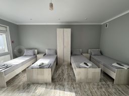 Пятиместный номер с собственной ванной комнатной, телевизором, мини холодильником. В номере пять односпальных кроватей. Предоставляется постельное белье, полотенца, одноразовые тапочки, мыльные принадлежности и фен.