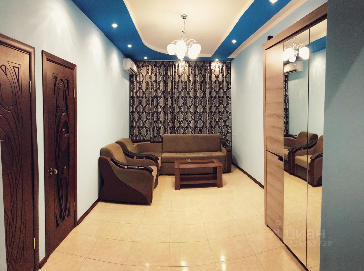 Двухкомнатный номер, со всеми необходимыми условиями: санузел, телевизор, кондиционер, мини-холодильник. Номер состоит из двух комнат, в спальной комнате имеется большая двухспальная кровать и дополнительная односпальная, гостинная комната дополнительно оснащена диваном, который при раскрытии образует еще дополнительное спальное место.