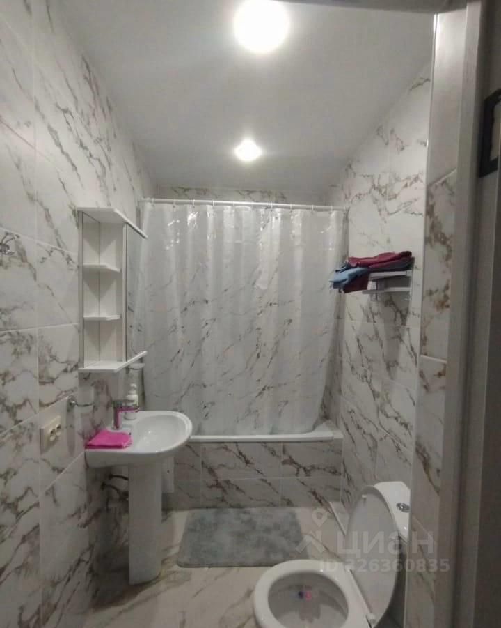 Квартира полностью меблирована и оснащена всей необходимой техникой: кондиционер, холодильник, телевизор, стиральная машина. В комнате и на кухне есть мебель, что позволяет сразу заехать и жить без лишних хлопот. Совмещённый санузел оборудован ванной, а значит, вы можете наслаждаться тёплыми расслабляющими водными процедурами.