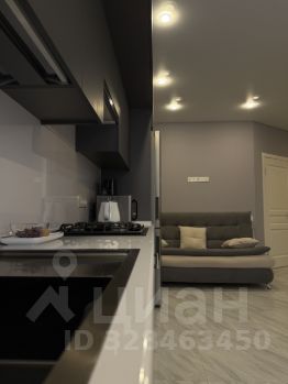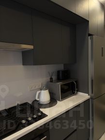 Зона кухни выделена точечным светом. В ней находится вся необходимая техника: холодильник, варочная панель, духовой шкаф, микроволновая печь, вытяжной шкаф, чайник, тостер. В шкафчике вы найдете полный комплект посуды,(чай, сахар, кофе).