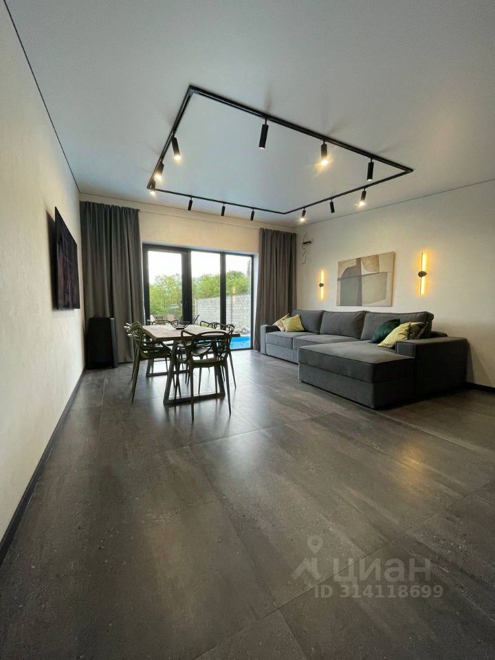 - просторная кухня-гостиная с большим мягким диваном