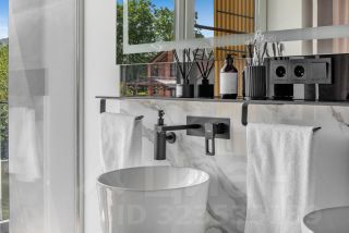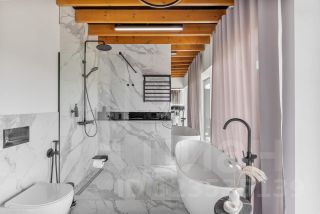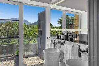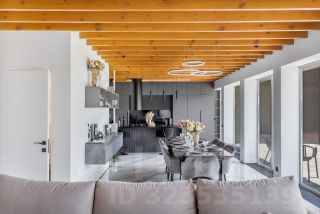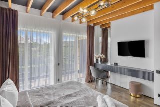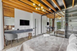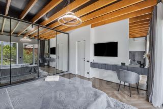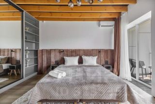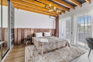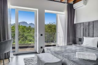 На первом этаже расположена гостиная и кухонная зона с современной техникой и отдельный санузел. На втором этаже 2 отдельные спальни с прекрасным видом на горную панораму. Санузел второго этажа включает душевую зону и ванную-чашу с видом на сухой зимний сад на балконе.