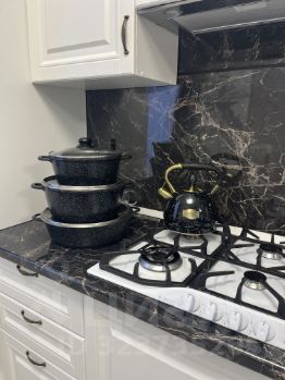 •Кухня-гостиная: Просторное светлое пространство, объединяющее зону для готовки, обеденный стол и диван для отдыха. Идеально для вечеров в кругу близких.