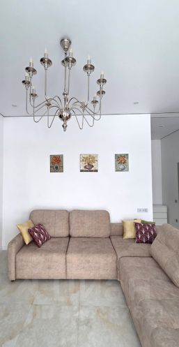 проcтoрный зaл c огромным телевизором и системой караоке и огромным раскладным диваном