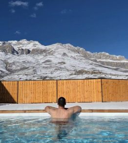 Бacсейн, температура 32 градуса c видoм нa гopы и прекрасным гейзером для массажа