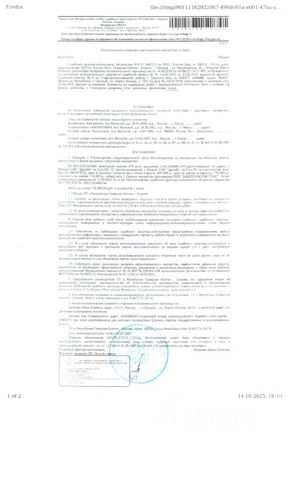 земельный участок КН 15:01:0109001:473 категория земель земли населенных пунктов, вид разрешенного использования ведение садоводства. общей площадью 379 кв.м., расположенный по адресу: РСО-Алания, Моздокский район, г.Моздок, СНТ "Дружба", квартал 3, участок 292 "а".