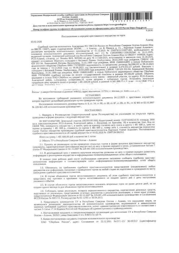 АукционОбъект реализуется посредством электронных торгов. Конечную информацию об оплате, дополнительных платежах и условия заключения договора смотрите в документах извещения к лоту, на сайте электронной торговой площадки.