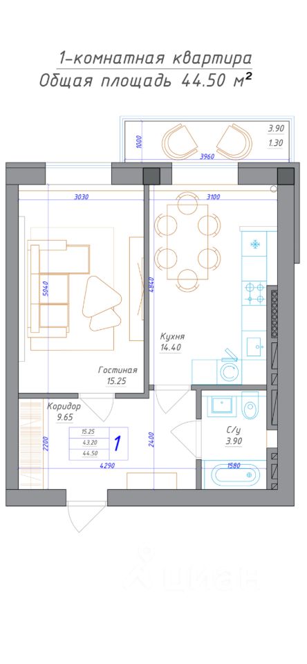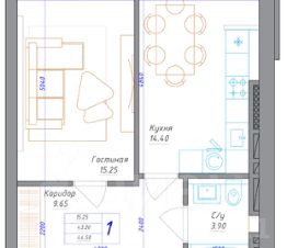 Идеальная планировка квартиры с огромной кухней для такой компактной квадратуры.