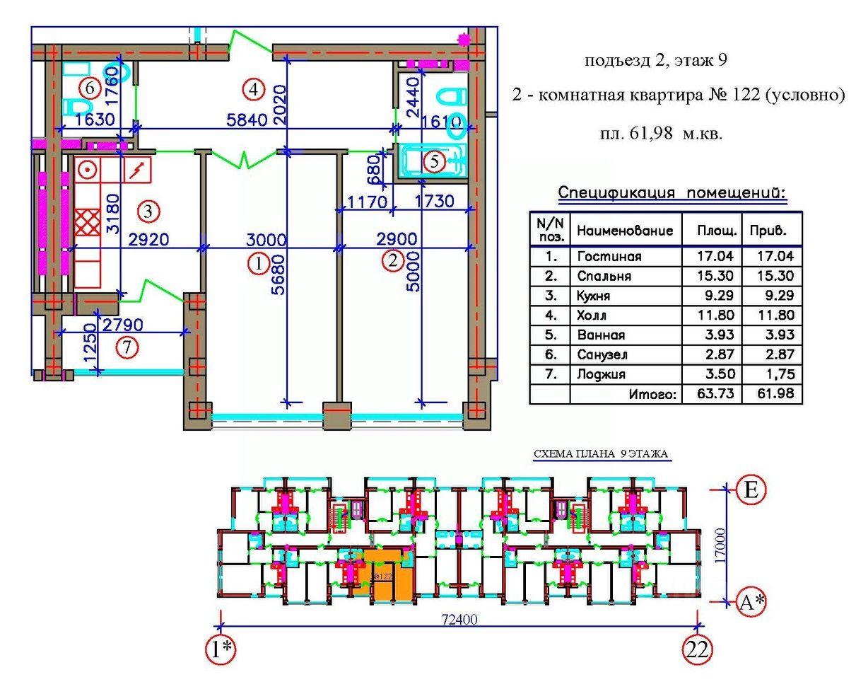 Общая площадь61,98 м²