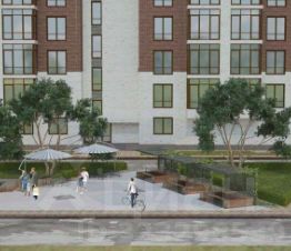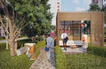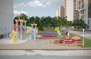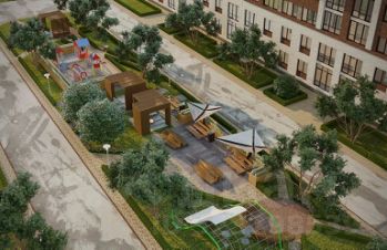 Для детей жилого комплекса предусмотрена современная развивающая детская площадка с необычными малыми архитектурными формами и гимнастическими снарядами.