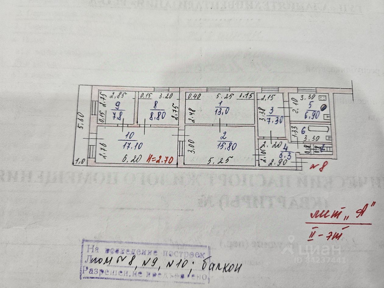 Высокие потолки 2.70 м. Окна выходят на улицу и во двор, обеспечивая хорошую освещенность.