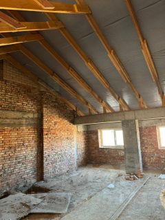 Окна выходят на две стороны. Потолки высокие: в нижней квартире 3 метра; в верхней 5 метров.