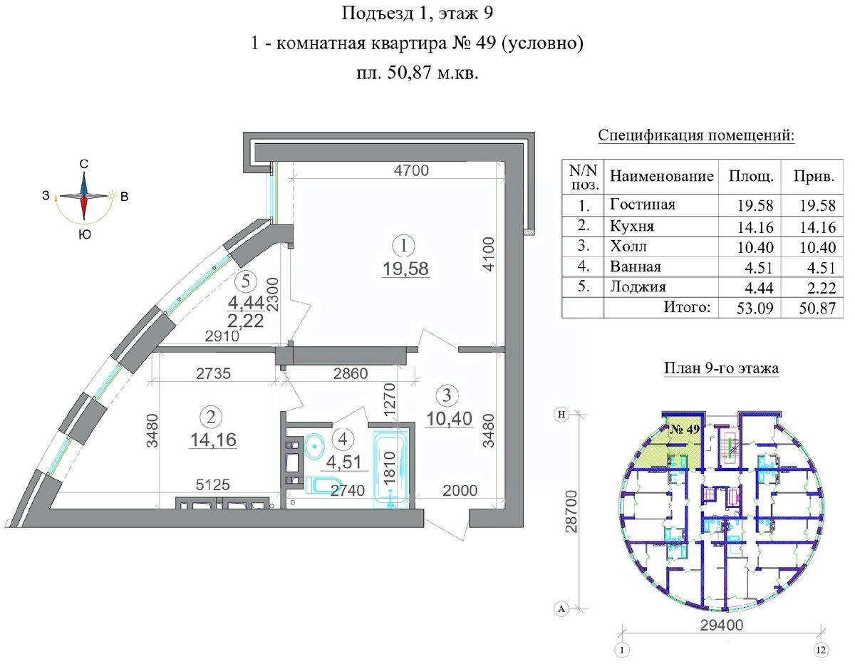 Общая площадь50,87 м²