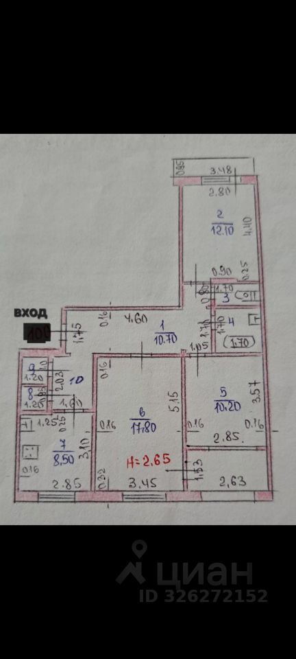 Продается просторная 3-комнатная квартира площадью 69 кв. м в центре Владикавказа, на проспекте Доватора, 244. Квартира расположена на 7 этаже 9-этажного панельного дома, построенного в 1975 году. Жилая площадь составляет 40,1 кв. м, а кухня порадует вас своим размером в 12 кв. м. Высота потолков 2,6 метра. Окна выходят как на улицу, так и во двор, обеспечивая хорошую освещенность и возможность проветривания.