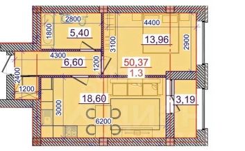 Продается просторная 1- к квартира в ЖК"САДЫ ШАЛДОНА", общей площадью 50 кв.м.