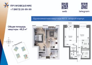 Продаётся 1 - комнатная квартира площадью 47,7 м² на 2 этаже. Квартира расположена в жилом комплексе бизнес-класса "Произведение на Первомайской", который представляет собой современный проект, состоящий из четырех 17-этажных корпусов. Строительство ведется по монолитной технологии с применением передовых инженерных решений, обеспечивающих повышенную сейсмоустойчивость зданий.
