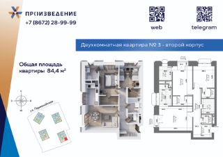 Продаётся 2 - комнатная квартира площадью 83,2 м² на 2 этаже. Квартира расположена в жилом комплексе бизнес-класса "Произведение на Первомайской", который представляет собой современный проект, состоящий из четырех 17-этажных корпусов. Строительство ведется по монолитной технологии с применением передовых инженерных решений, обеспечивающих повышенную сейсмоустойчивость зданий.