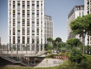 Благоустройство территории ЖК "Произведение на Первомайской" представляет собой полноценную экосистему для жизни и отдыха. Ландшафтный дизайн выполнен с использованием геопластики, создавая разноуровневое озелененное пространство с зонами для тихого отдыха, такими как "секретный сад". На территории обустроены современные детские игровые комплексы с безопасным покрытием и многофункциональные спортивные площадки. Уникальными элементами инфраструктуры являются собственный коворкинг, мужские и женские творческие мастерские, соседский центр (хадзар) и дворовой амфитеатр для проведения мероприятий.