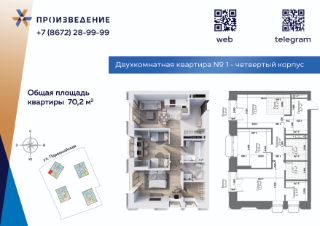 Продаётся 2 - комнатная квартира площадью 70,2 м² на 7 этаже. Квартира расположена в жилом комплексе бизнес-класса "Произведение на Первомайской", который представляет собой современный проект, состоящий из четырех 17-этажных корпусов. Строительство ведется по монолитной технологии с применением передовых инженерных решений, обеспечивающих повышенную сейсмоустойчивость зданий.