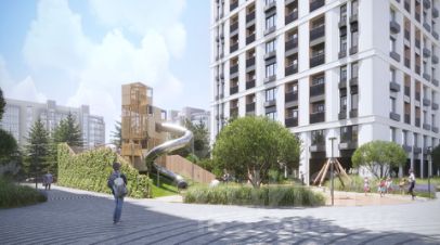 Благоустройство территории ЖК "Произведение на Первомайской" представляет собой полноценную экосистему для жизни и отдыха. Ландшафтный дизайн выполнен с использованием геопластики, создавая разноуровневое озелененное пространство с зонами для тихого отдыха, такими как "секретный сад". На территории обустроены современные детские игровые комплексы с безопасным покрытием и многофункциональные спортивные площадки. Уникальными элементами инфраструктуры являются собственный коворкинг, мужские и женские творческие мастерские, соседский центр (хадзар) и дворовой амфитеатр для проведения мероприятий.