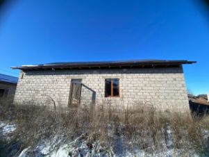 За домом расположено одноэтажное строение размером 4,5 19 м — без крыши, но с установленными окнами