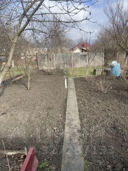 Участок ухожен, грядки для садоводства и плодовые деревья. На всей территории двора уложена плитка.